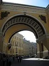 The name of the ARKA was initiated by the nearest neighbourhood with Arch of General Staff Building commemorating the Russian Victory over Napoleon in the Patriotic War of 1812, and also as a sign of special attention to the high traditions of Russian Art. The building was designed by Carlo Rossi in the Empire style and built in 1819-1829.