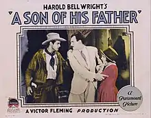 A Son of His Father is a 1925 American silent Western film directed by Victor Fleming. The screenplay, by Anthony Coldeway, was based on Harold Bell Wright's novel. The film stars Bessie Love, Warner Baxter, Raymond Hatton, and Walter McGrail. It was produced by Famous Players–Lasky Corporation and distributed by Paramount Pictures.