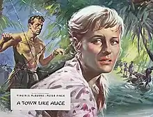 A Town Like Alice is a 1956 British drama film produced by Joseph Janni and starring Virginia McKenna and Peter Finch that is based on the 1950 novel of the same name by Nevil Shute.[2] The film does not follow the whole novel, concluding at the end of part two and truncating or omitting much detail. It was partially filmed in Malaya and Australia.
