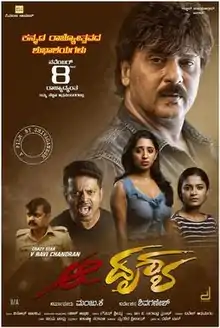 Aa Drushya[2] is a 2019 Indian Kannada language neo-noir crime thriller written by Karthick Naren and directed by Shiva Ganesh.[3][4] The film is produced by K. Manju[5] under his banner K Manju Cinemas. It features V. Ravichandran[6][7] in the lead role The supporting cast includes Achyuth Kumar, Ramesh Bhat and Chaitra Achar. The score and soundtrack for the film is by Gautam Srivastaa and the cinematography is by A. Vinod Bharathi. The editing of the film is done by Suresh Arumugam. The film is a remake of the 2016 Tamil film Dhuruvangal Pathinaaru starring Rahman in the lead role.