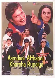 Aamdani Atthanni Kharcha Rupaiya (lit. 'Income is 50 paise and expenses are a whole rupee'; cont. Expenses are greater than wages) sometimes abbreviated as AAKR is a 2001 Indian Hindi-language comedy film directed by K. Raghavendra Rao starring Govinda, Juhi Chawla, Tabu and Johnny Lever. This was the remake of Tamil film Viralukketha Veekkam directed by V. Sekhar. The film was an below average grosser at box office.[1][2][3]