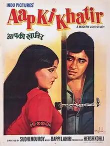 Aap Ki Khatir (transl.For your sake) is a 1977 Bollywood film, produced by Harsh Kohli and directed by Sudhendu Roy. The stars are Vinod Khanna, Rekha, Helen and Om Shivpuri. The film's music is by Bappi Lahiri. The last song in the film "Bombay se Aaya Mera Dost" became a memorable hit. The film is a remake of the American film For Pete's Sake (1974).[1]