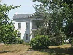 Aaron Swayzee House, also known as the Swayzee-Love House, is a historic home located at Marion, Grant County, Indiana. It was built in 1855, and is a two-story, L-shaped, Greek Revival style brick dwelling painted white. The front facade features a pedimented portico with two 22-foot tall Corinthian order columns and stained glass windows. It is one of the oldest houses in Marion and Grant County.[2]: 2