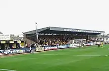 Much redevelopment has occurred since including the redevelopment of the main stand to include a roof and extra seating and, most recently, the erection of a new all-seated stand at the south of the ground to replace the original open terrace that had stood there since 1966. Despite planning permission being granted for further development, as part of the same scheme, at the north end of the ground (including an 86-bedroom hotel, retail space, new offices and a new supporters club), financial difficulties meant this has yet to be entered into.[8] In the 1991–92 season, Cambridge were challenging for promotion to the forthcoming new Premier League and were faced with the prospect of changing Abbey Stadium into an all-seater venue, as all teams in the highest two divisions of the English league were obliged to be all-seater by 1994 due to the changes in legislation that followed the Hillsborough disaster of 1989. But due to Cambridge's subsequent decline (they were back in the lowest division of the Football League within four years) the ground has changed very little in the last 15 years, and with standing accommodation still permitted below the second tier of the English league there has been little pressure to make the stadium all-seater and in 2001 the club's directors stated that it was their intention to retain standing accommodation for as long as they are at a level that will permit it.