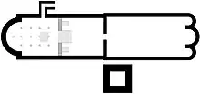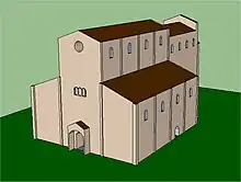 The last architectural phase of the abbey church, the one that later survived until the eighteenth century, can be dated to the twelfth century, operated at the behest of Abbot Gonterio.[86] The construction of the building, although respecting the orientation of the previous building and tracing some of its features, involved the complete demolition of the Desiderian church and the Wenzeslao extension.[85] The building was in quite unusual but imposing forms, almost 50 meters long and more than 25 meters wide, divided into two clearly distinct areas.[86]