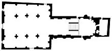 The crypt consisted of four small naves, punctuated by 15 slender columns and provided both with an entrance that put it in direct communication with the outside and with masonry seats in the apsidal hemicycle that suggested the existence of a choir for the friars.[83] Whether this extension of the first church to the west ended up resulting in two different sacred rooms, communicating through the ancient entrance to the church, or rather with the creation of a large sacred building from the unified environment through the demolition of the facade of the Desiderian structure, cannot be known with certainty.[84]