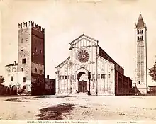 In 1226 Ezzelino III da Romano seized power in Verona and throughout the March of Treviso, subjugating even the religious community of San Zeno, creating rifts within them that manifested themselves in a substantial loss of autonomy in favor of the lay members of the municipality. On May 23, 1238, the sumptuous wedding between Frederick II's daughter Selvaggia and Ezzelino took place in the basilica; it is most likely that the emperor resided for the occasion within the abbey tower.[9][10][11]