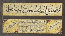 Persian calligraphy of Abd ol-Baghi Tabrizi, dated 1588-89. The panel contains a ruling attributed to Ali from the Nahj al-Balagha