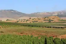 Tel Abel Beth Maacah – view of the northern part of the tell from the east; the Lebanese village of Adaisse in the background