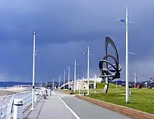 The Kitetail sculpture at Aberavon seafront is Wales' largest sculpture standing at 12 metres high and weighing 11 tonnes. Designed by Carmarthenshire-based artist and sculptor Andrew Rowe, it was installed in December 2007.[10]