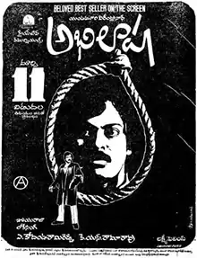 Abhilasha (transl.Desire) is a 1983 Indian Telugu-language thriller film directed by A. Kodandarami Reddy and produced by K. S. Rama Rao. The film stars Chiranjeevi and Radhika while Rao Gopal Rao and Gollapudi Maruti Rao play vital roles and the music is composed by Ilaiyaraaja. An adaptation of Yandamuri Veerendranath's novel of the same name, it revolves around a young lawyer striving to end capital punishment in India, but gets himself entangled in a murder case.[3][4]