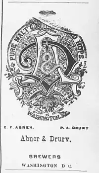 ![]() Abner-Drury Brewery advertisement and logo 1900 | |