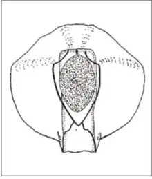 A wide anterior nectophore with side ridges creates a wing like appearance and providing wing functions. They are also have rounded edges of facets. There is no transverse ridge between the ventral and apico-ventral facets. On the posterior side the nectophore is both the same width and length reinforcing the round and wing shape. They have combs that contain between 4 and 7 strong ostial teeth.[2]