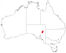 It has a limited distribution in arid conditions of central South Australia in the northern Flinders Range from Balcanoona to Arkaroola where it is found on rocky slopes, ridges and hills in skeletal soils[1] over Skillogallee dolamite, reputed to be highly magnesic. It is often a part of open woodland or shrubland communities along with Eucalyptus gillii and Triodia irritans.[2]