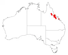 It is endemic to parts of north-eastern Queensland including around the Argentine mine which is found approximately 60 km (37 mi) south west of Townsville where it is situated on plains and in gorges growing in brown loamy soils overlying Argentine schist bedrock as a part of Eucalyptus woodland communities.[2]