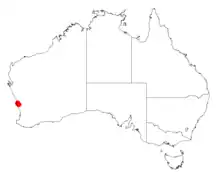 It is native to an area in the Wheatbelt and Mid West regions of Western Australia where it is found growing in gravelly, sandy or loamy soils over or around laterite.[1] It has a very limited range between Jurien Bay in the north down to around Eneabba in the south where it is usually as a part of low open woodland or low open heathland communities.[2]