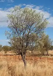 Acacia sericophylla is a shrub or tree commonly known as the desert dogwood, desert oak or cork-bark wattle. To the Indigenous Australian people of the Pilbara, the Nyangumarta peoples, it is known as Pirrkala.[2] The species is of the genus Acacia and the subgenus Plurinerves.