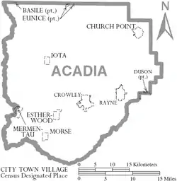 3. "Acadia Parish History". Acadia Parish Library. Archived from the original on July 7, 2010. Retrieved September 3, 2014.
