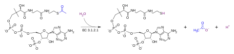 The enzyme acetyl-CoA hydrolase (EC 3.1.2.1) catalyzes the reaction