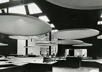 Following the war, Castiglioni returned to Milan and joined the architectural design practice that his brothers Livio and Pier Giacomo had started with Luigi Caccia Dominioni in 1938.[3] Much of their work was in exhibition design, but they also carried out a number of architectural projects, including the reconstruction in 1952–53 of the Palazzo della Permanente, which had been destroyed by bombing in 1943.[6]