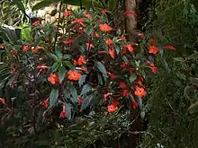 Achimenes erecta (syn. A. coccinea) is also known as Cupid's bower, nut orchid, and magic flower.[1] Despite its name, Achimenes erecta, this plant is a trailing achimenes. It produces a display of bright red flowers and dark green foliage. The reddish green stem carries groups of hairy, heart-shaped leaves.[2] The flowers last only a few days, but are produced over a period lasting all the way from June to October.