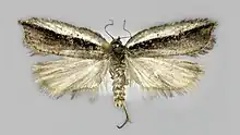 The wingspan is about 20 mm. It is a very variable species, with dozens of named forms, and many intermediate types, which has led to its description by over 125 synonyms. Some forms closely resemble Acleris cristana so certain identification requires microscopic examination of the genitalia.[3]