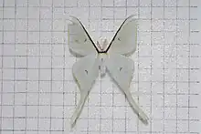 The species Actias neidhoederi was described by the local Taiwanese Sheng-Keng Ong and Ching-Chin Yu in 1968.[2] It is believed that they were the first two Taiwanese to describe a new species of moth. The publication of this species is based on several specimens collected from the Neng-gao Mountain area, Nantou. The male holotype is deposited at the Carnegie Museums of Pittsburgh in the United States, while five paratype male specimens and one allotype female specimen are deposited at the Milwaukee Public Museum in the United States.