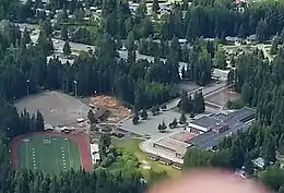Westerly view from Thunder Mountain shows Adair-Kennedy Memorial Park, Floyd Dryden Middle School and Mendenhall Loop Road.
