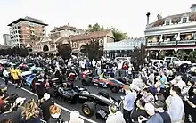 On the Saturday and Sunday, the Victoria Park Sprint takes place at Victoria Park. Multiple categories of vehicles take part in the demonstration runs, ranging from classic Formula 1 cars, V8 Supercars, touring cars, sportscars, rally cars, motorbikes, electric cars and more.[9] Each category is on track for 10 minutes, with cars released at 30-second intervals in a super sprint format. There are also multiple demonstrations over the course of the event, such as at the 2018 event where drag races took place between three different cars, each racing against a Red Bull Air Race aeroplane.[10]