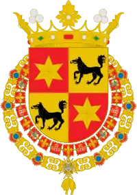 Born in Pasajes (by then still part of San Sebastián), in the Basque Province of Guipúzcoa in Spain, Blas de Lezo y Olavarrieta attended school in France and commenced his naval career in the Franco-Spanish fleets, then united by the Bourbon alliance of the War of Spanish Succession, in 1701 as a midshipman. In 1704, he fought in the War of the Spanish Succession as a crew member in the Franco-Spanish fleet against the combined forces of Great Britain and the Netherlands at the indecisive Battle of Vélez-Málaga. During the battle, his left leg was hit by cannon-shot and was amputated under the knee.[5] Promoted to ensign, de Lezo was present at the relief of Peñíscola, Spain, and Palermo in Sicily; his service in these and other actions resulted in his promotion to ship lieutenant. Participating in the 1707 defence of the French naval base of Toulon cost him his left eye. In 1711 he served in the Spanish Navy under the orders of Andrés de Pez. In 1713 he was promoted to captain. In 1714 he lost use of his right arm in the Siege of Barcelona. Later in this campaign, his ship captured the Stanhope commanded by John Combes, sometimes claimed to be a 70-gun but actually just a 20-gun merchantman.[6]