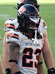 In 2023, he made the team's opening day active roster and also earned his first start on July 9, 2023, against the Montreal Alouettes.[5] On October 10, 2023, he recorded his first career interception against the Winnipeg Blue Bombers.[6] He played in 17 regular season games, with four starts, where he had 16 defensive tackles, 10 special teams tackles, one interception, and one punt block.[2][6]