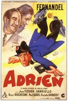 Adrien is a French comedy film, released in 1943.[1] Directed by Fernandel, the film stars Fernandel as Adrien Moulinet, a modest and unassuming bank clerk who invents a motorized rollerskate but needs the help of advertising agent Jules Petipas (Paul Azaïs) to help market it.