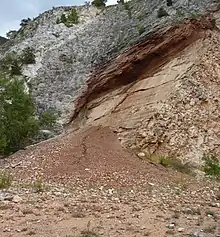 Regolith mapping helps distinguish different kinds of superficial deposits which refer to loosely arranged aggregates of weathered materials on the land surface.[1][10] Aerial photographs can be used to establish the borders between the fluvial and gravity-driven hillslope sediments.[1] These superficial deposits usually have indistinct borders.[1] Some examples of the deposits identified using regolith mapping are described below.