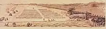 In 1727, sergeant-major Francisco de Souza Faria opened with the help of slaves a road through the Serra do Nordeste to facilitate the passage of cattle from the south to the markets in the center of the country.[1] They also participated in the expedition commanded by Brigadier José da Silva Pais to found the Jesus, Maria, José Fort in 1737, at Barra de Rio Grande.[3] 190 slaves accompanied the Demarcator Army, in charge of implementing the territorial determinations established by the Madrid Treaty of 1750,[1] and others arrived along with the Azorean settlers.[2] It is likely, however, that they appeared much earlier, along with the exploratory expeditions of bandeirantes and tropeiros that had been occurring since the 17th century.[1]