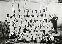 Many blacks were beginning to gain space and respectability in teaching, union organizing, and other areas,[9][30] such as Dario de Bittencourt, lecturer and professor of law at UFRGS and director of the newspaper O Exemplo,[30] Paulino Azurenha, considered by many authors the best literary chronicler of the state in the early 20th century and an important figure in journalism,[32] and José Cândido de Campos Júnior, lawyer, district attorney, intendant of Caxias do Sul, and grand-master of the Masonic lodge Força e Fraternidade.[33][34] An original and influential figure was Custódio Joaquim de Almeida, allegedly an African prince, who settled in Porto Alegre and died in 1935. He was a religious leader and important disseminator of batuque, had contacts in the elite and political class and was an aggregator of the black community. His figure was surrounded by rich folklore and became a symbol of the anti-racist struggle and for the free expression of African cults.[35][36][37]