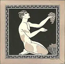 Diaghilev, Nijinsky, and Bakst developed the original idea for The Afternoon of a Faun. The artwork on ancient Greek vases and Egyptian and Assyrian frescoes, which they viewed in the Louvre museum, was their source of inspiration.[1] Bakst had previously worked with Vsevolod Meyerhold who was an innovative theatre producer and director that had introduced concepts like two-dimensionality, stylized postures, a narrow stage, and pauses and pacing to emphasise significant moments into his productions. Bakst, Nijinsky, and Diaghilev transferred these concepts to a ballet format in Faun.[2] Nijinsky's aim was to reproduce the stylised look of the ancient artworks on the stage. In his portrayal of the faun, Nijinsky managed to reproduce exactly the figure of a satyr shown on Greek vases in the Louvre.[3][4]