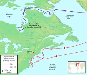 That year John Cabot (Italian: Giovanni Caboto), also a commissioned Italian, got letters patent from King Henry VII of England. Sailing from Bristol, probably backed by the local Society of Merchant Venturers, Cabot crossed the Atlantic from a northerly latitude hoping the voyage to the "West Indies" would be shorter[103] and made a landfall somewhere in North America, possibly Newfoundland. In 1499 João Fernandes Lavrador was licensed by the King of Portugal and together with Pêro de Barcelos they first sighted Labrador, which was granted and named after him. After returning he possibly went to Bristol to sail in the name of England.[104] Nearly at the same time, between 1499 and 1502 brothers Gaspar and Miguel Corte Real explored and named the coasts of Greenland and also Newfoundland.[105] Both explorations are noted in the 1502 Cantino planisphere.