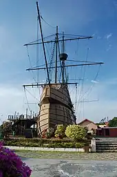 The voyages had a significant and lasting effect on the organization of a maritime network, utilizing and creating nodes and conduits in its wake, thereby restructuring international and cross-cultural relationships and exchanges.[62] It was especially impactful as no other polity had exerted naval dominance over all sectors of the Indian Ocean prior to these voyages.[63] The Ming promoted alternative nodes as a strategy to establish control over the network.[64] For instance, due to Chinese involvement, ports such as Malacca (in Southeast Asia), Cochin (on the Malabar Coast), and Malindi (on the Swahili Coast) had grown as key alternatives to other important and established ports.[lower-alpha 1][65] The appearance of the Ming treasure fleet generated and intensified competition among contending polities and rivals, each seeking an alliance with the Ming.[62]