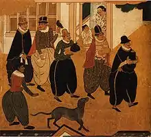 Christian embassies were sent as far as Karakorum during the Mongol invasions of the Levant, from which they gained a greater understanding of the world.[43][44] The first of these travellers was Giovanni da Pian del Carpine, dispatched by Pope Innocent IV to the Great Khan, who journeyed to Mongolia and back from 1241 to 1247.[40] About the same time, Russian prince Yaroslav of Vladimir, and subsequently his sons Alexander Nevsky and Andrey II of Vladimir, travelled to the Mongolian capital. Though having strong political implications, their journeys left no detailed accounts. Other travellers followed, like French André de Longjumeau and Flemish William of Rubruck, who reached China through Central Asia.[45] Marco Polo, a Venetian merchant, dictated an account of journeys throughout Asia from 1271 to 1295, describing being a guest at the Yuan dynasty court of Kublai Khan in Travels, and it was read throughout Europe.[46]