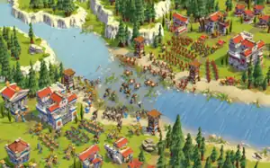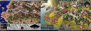 The developers intended for the game to be reminiscent of the previous games from the series, yet have a "bold and more graphic look with a lot of character".[16] Note the near identical units and building placement.
