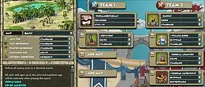 Skirmish hall game setup screen. The Skirmish booster was added to fill an absent skirmish game-mode found in prior games of the series. Four player co-op support was later added as well.