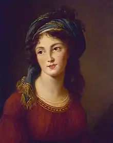 In 1794, according to The Memoirs of Madame Vigée Lebrun, Marie-Élisabeth-Louise Vigée-Le Brun painted a half-length portrait of the Duchess de Guiche wearing a blue turban, in Directoire style. She wrote: "…I encountered the Duchesse de Guiche, whose lovely face had not changed in the least."