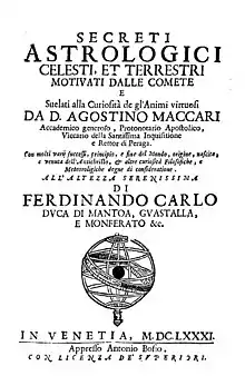 Agostino Maccari was a 17th-century Italian astrologer, theologian, protonotary apostolic and vicar of the Holy Inquisition.[1][2]