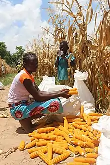 Agriculture in Ghana consists of a variety of agricultural products and is an established economic sector, providing employment on a formal and informal basis.[1][2] It is represented by the Ministry of Food and Agriculture.[3] Ghana produces a variety of crops in various climatic zones which range from dry savanna to wet forest which run in east–west bands across Ghana. Agricultural crops, including yams, grains, cocoa, oil palms, kola nuts, and timber, form the base of agriculture in Ghana's economy. In 2013 agriculture employed 53.6% of the total labor force in Ghana.[4][5]
