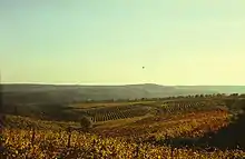 73% of utilised agricultural area is arable land.[9] This percentage is among the highest in Eastern Europe.[6] Moldova's land area can be separated into three differing agro-ecological zones, where terrain, soil type, climate and water availability vary between the Northern, Central and Southern agro-ecological zones.[6] Field crops are most suitable to the Northern agro-ecological zone.[6] The utilisation of land area for agricultural output varies, with horticultural production accounting for 22.3% of agricultural output in 2013.[10] 281,000 hectares of land is occupied by orchards and vineyards, whereas hayfields and pastures cover an estimated 352,300 hectares.[1] These figures can be considered as a percentage of utilised agricultural area (UAA), with permanent crops occupying 10% of UAA, and natural pastures and meadows 17%.[9] Agricultural area in Moldova is not fully utilised, as an estimated 18-20% of this land area is not cultivated as a result of non-use by landowners or scarce resources.[1] Agriculture in Moldova extends to include forestry, hunting and fishing.[6] To consider Moldovan agricultural output, it is characterised by natural potential, human resources and technological efficiency.[11]