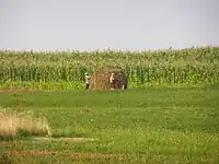 Romania has an agricultural capacity of approximately 14.7 million hectares (57,000 sq mi) 9.38 million are used as arable land.[1] In 2008, an evaluation revealed that 6.8 million hectares are not used.[2] In 2018, Romania was the third biggest agricultural producer of the EU and produced the largest amount of maize.[3]