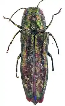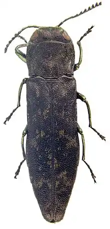 - ↑ Bellamy, C. L. "Genus Agrilus Curtis 1825". The World of Jewel Beetles (Insecta: Coleoptera: Buprestidae). The Coleopterists Society. Archived from the original on 15 February 2016. Retrieved 25 April 2018.