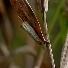 The wingspan is 20โ39 mm. Adults are on wing from August to October in one generation per year.