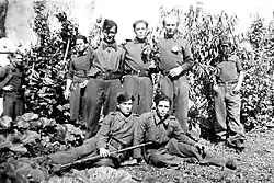 Ahmadiyya Jabrayilov (with rifle) with his comrades in France during the Second World War. Photo was published in the article about Jabrayilov in Bakinskiy rabochiy (1966). The original is in his house-museum in Shaki.