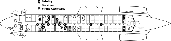 Less than 90 seconds after touchdown, the interior of the plane flashed over and ignited, killing the remaining 23 passengers on board, who died from smoke inhalation and burns from the flash fire. Of the 18 surviving passengers, three received serious injuries, 13 received minor injuries and two were uninjured. None of the five crew members sustained any injuries.[2]: 8 Survivor Dianne Fadley remarked: "It was almost like anybody who got out had nothing wrong... You made it and you were completely fine, or you didn't make it."[1] The fire completely destroyed the aircraft.[2]: 9
